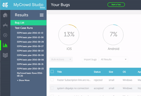 Perform Regression testing, compatibility testing or UAT with Test Cases. Easily create natural language Test Cases and let MyCrowd’s community of testers run through them quickly and cost-effectively.Key Features:
